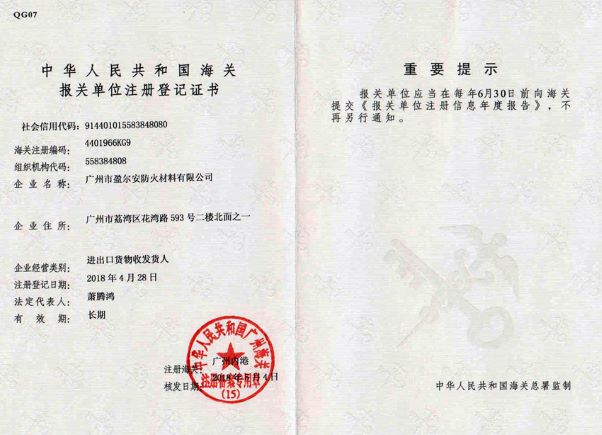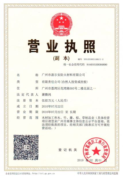 企业名称: 广州市盈尔安防火材料有限公司 股权代码: 891133