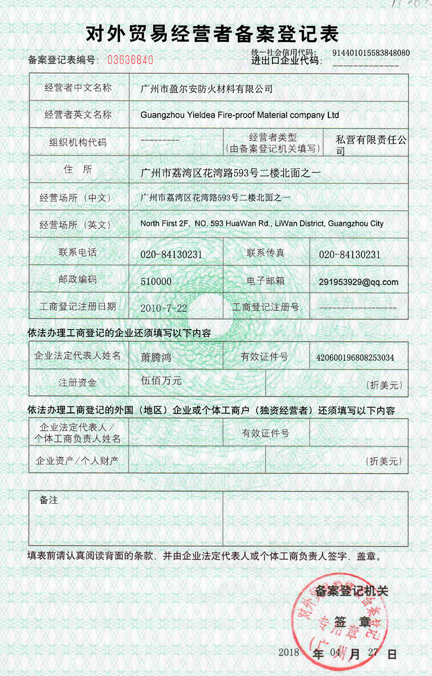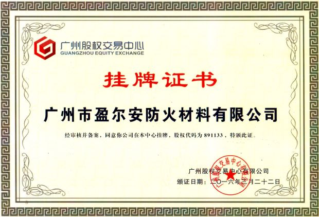 企业名称: 广州市盈尔安防火材料有限公司 股权代码: 891133